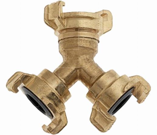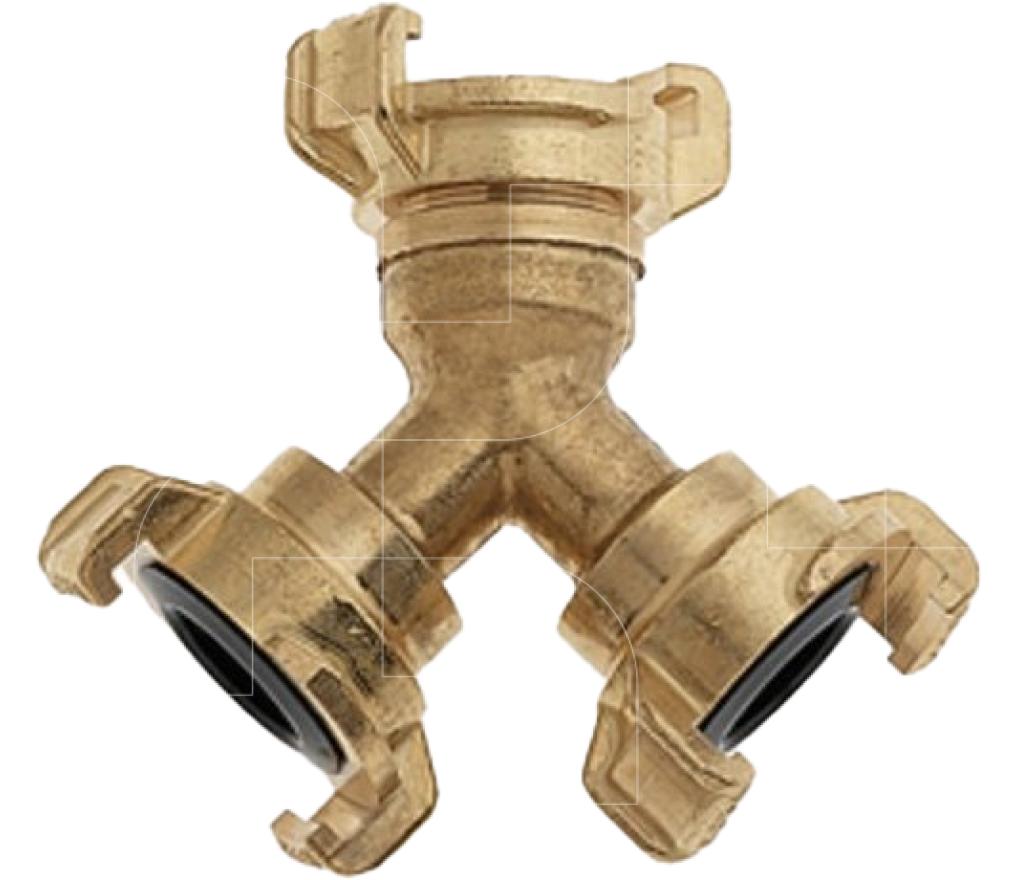 Driewegstuk voor het splitsen van de kraanuitlaat in 2 bajonetaansluitingen.