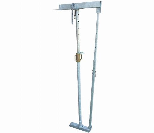 - Ten einde de gewenste ondersteuning te verkrijgen worden de buisprofielen aan elkaar gekoppeld door de gaten van binnen - en buitenbuis aan elkaar te koppelen door een pen. Vervolgens drukt men de schroefstempel omhoog door middel van de daartoe aangebrachte oren zodat de lepel een opwaartse kracht ondergaat ten gevolge van trek in de buizen en druk in de schroefstempel. De constructie kan ontmanteld worden door de oren van de schroefstempel weer terug te draaien