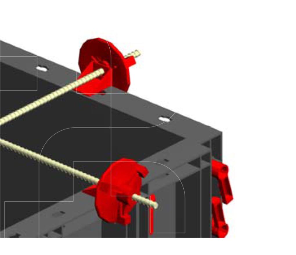 - De tie-rod bracket zorgt er tevens voor dat uw bekistingsstangen verwijderd blijven van het gestort beton, zodat u makkelijk kan gladstrijken