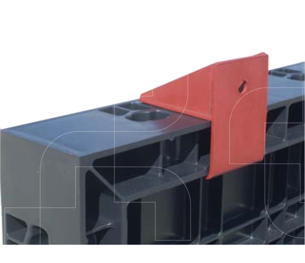 De Geopanel tie-rod bracket, de connector die u gebruikt wanneer u de bekistingsstangen niet doorheen de bovenste rij gaten van de panelen wil plaatsen. Hierdoor hoeft u hier ook geen afstandhouders te gebruiken.
