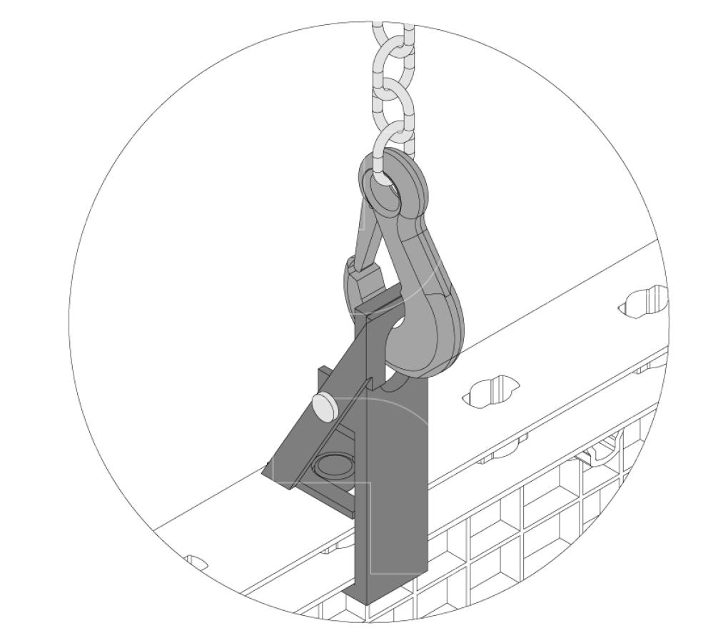 De Geopanel lifting hook laat uw toe om een groot aantal aangeschakelde panelen snel te verplaatsen. Tot wel 3 x 12 m kan het verplaatst worden in 1 stuk.