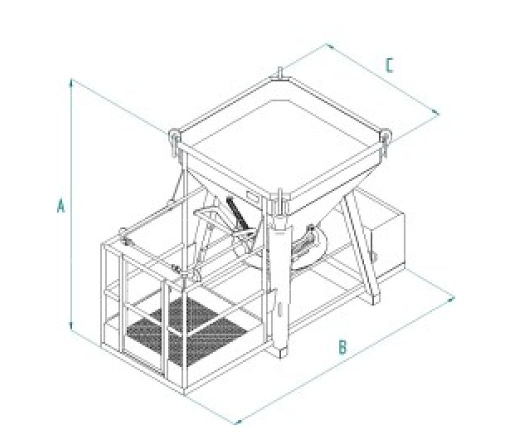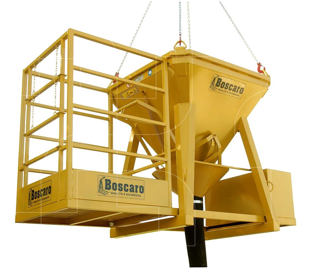 De bak is voorzien van een vierbenige kettingstrop en monteert een 2 meter lange rubberen slang met diameter van 200 mm die op verzoek ook in verschillende maten en lengtes verkrijgbaar is om aan te passen aan de specifieke behoeften van uw project.