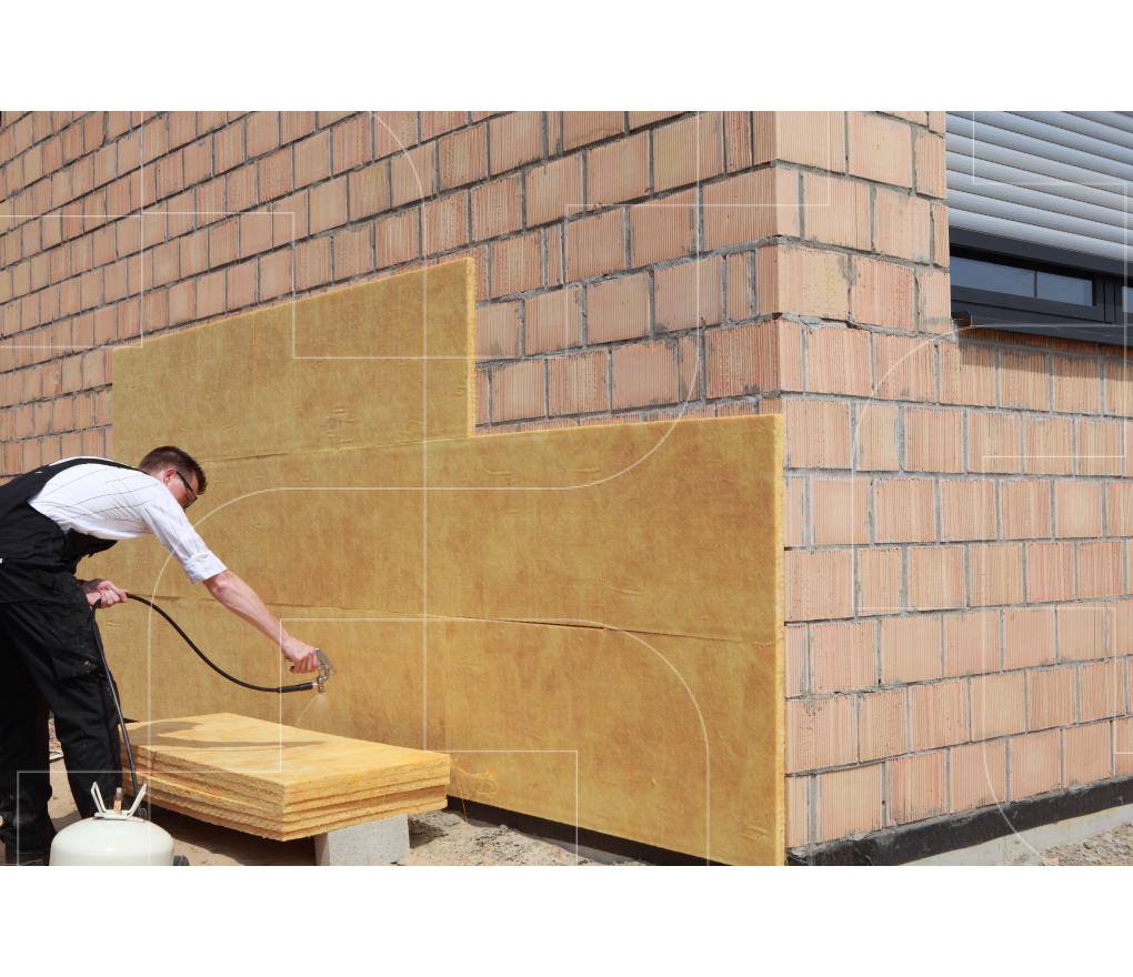 - Permanent of tijdelijk verlijmen van alle vezelachtige, zachte en halfharde isolatiematerialen, minerale wol (steenwol, glaswol, ... ), spijkerflensdekens, technische isolatie