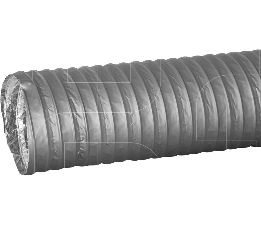 De slang bestaat uit meerdere lagen aluminium en polyester waarin een spiraaldraad verwerkt wordt.