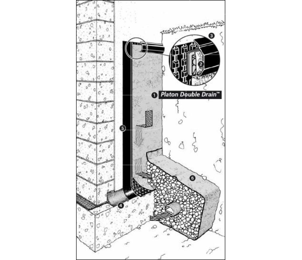 - Systeem Platon Double Drain is een dubbelzijdige drainagemat met een dubbele functie, draineert de bodem en filtert het draineerwater + scheidt de aarde van de drainerende laag dmv filterverlies