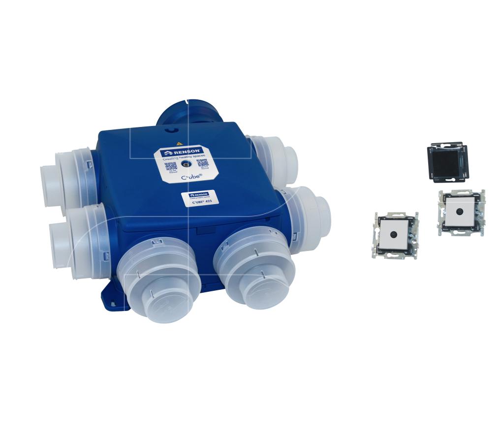 De Renson Cube is een vraaggestuurd ventilatiesysteem dat het extractiedebiet aanpast in functie van de externe sensoren.