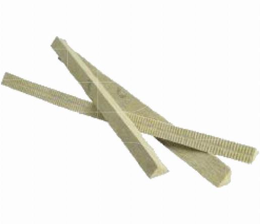 Hoeklatten in rotswol 5x5 cm voor het "breken" van de opkant van 90° naar 2 hoeken van 45° die het aanbrengen van het dichtingsmembraan vereenvoudigen zodat er minder spanning optreedt in het bitumineuze dakvlak en minder kans ontstaat op stilstaand water in de hoek.