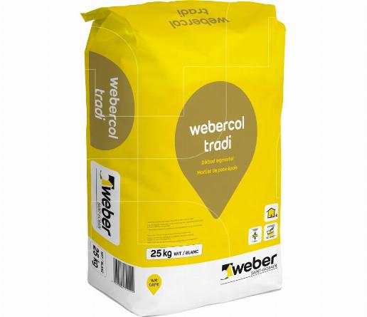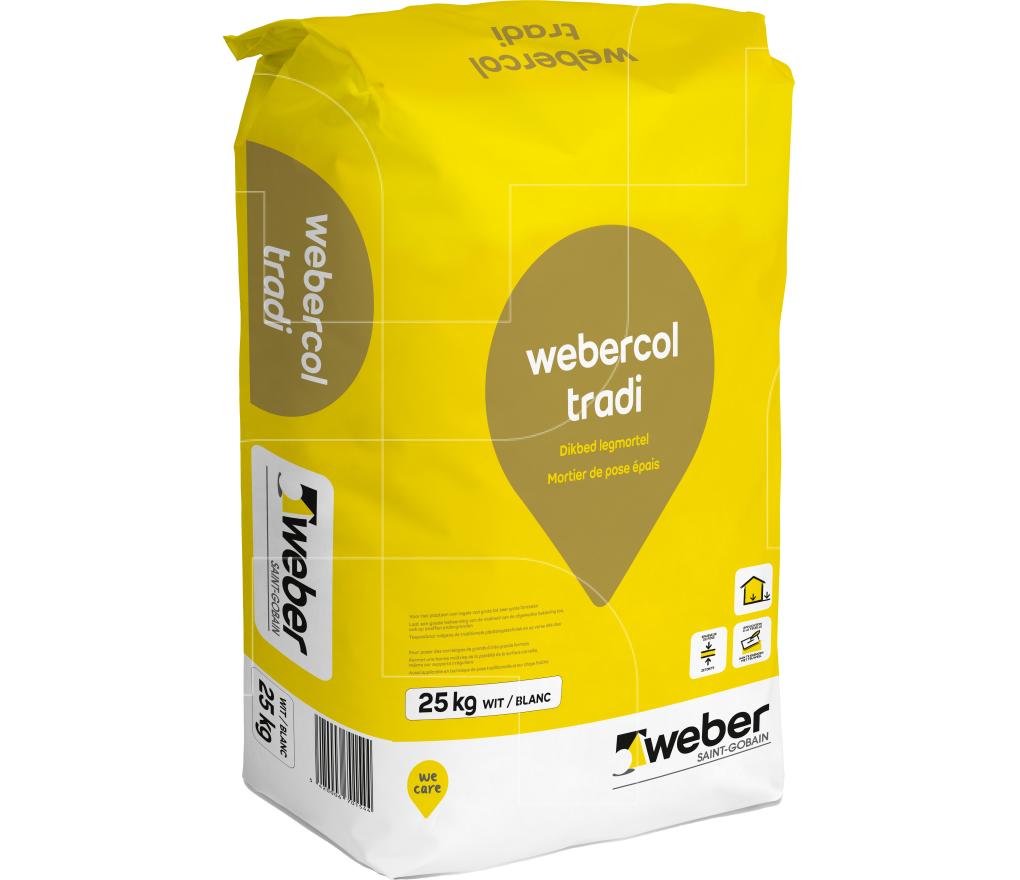 Webercol Tradi is een dikke legmortel voor het plaatsen van natuursteen en poreuze tegels in een mortelbed.