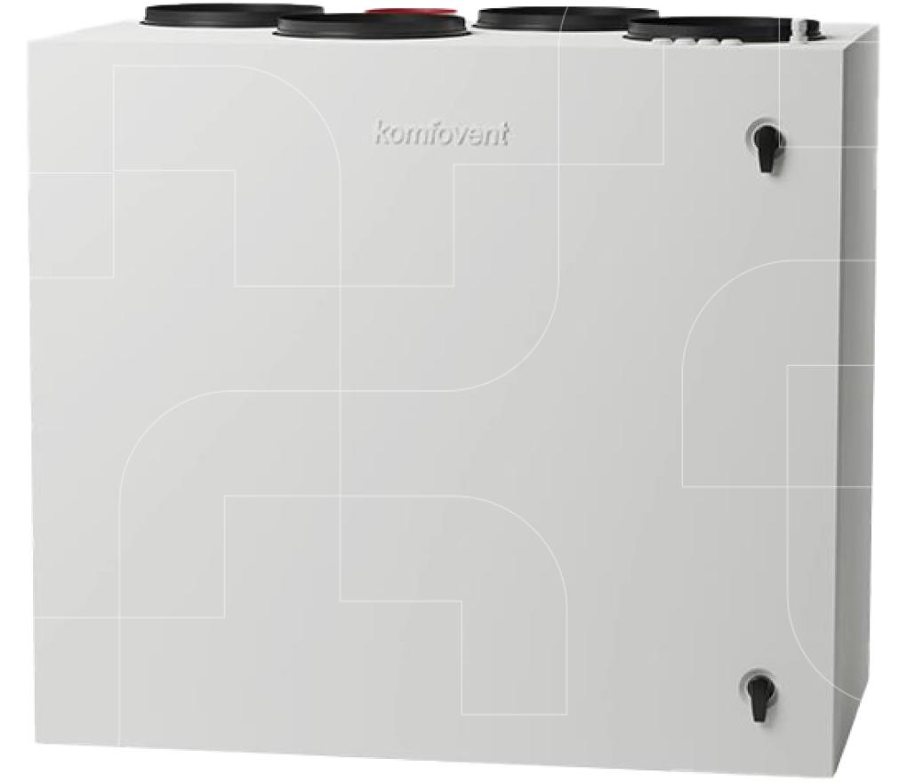 Compacte ventilatie-unit met bovenaansluitingen in industriële bouwkwaliteit.