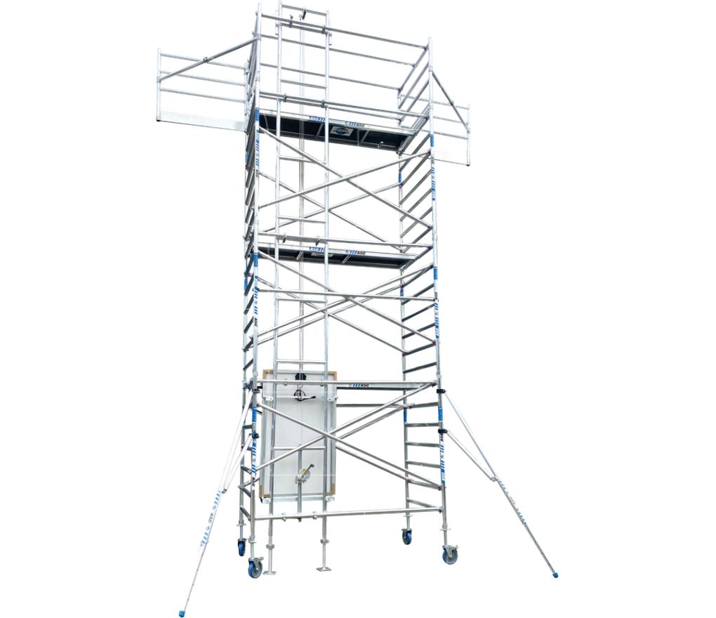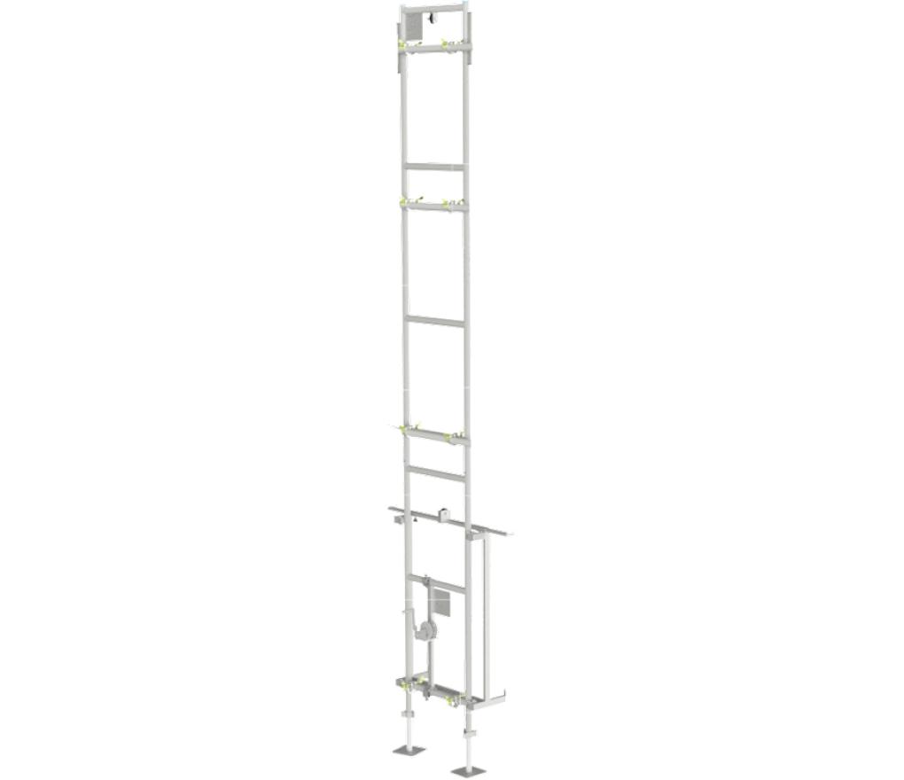 Universele stellinglift voor het veilig verticaal verplaatsen van bouwmaterialen in uw stelling. Deze bestaat uit modulaire onderdelen en is eventueel verder uit te breiden.