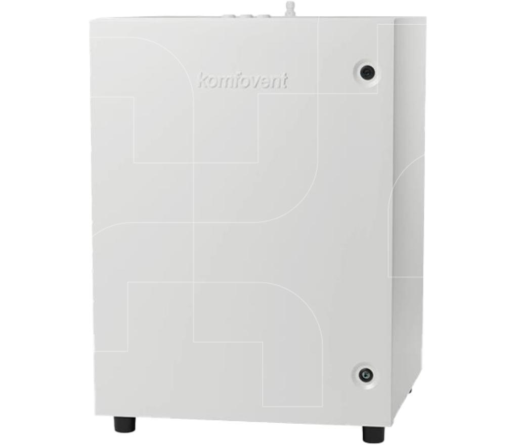 Compacte ventilatie-unit met bovenaansluitingen in industriële bouwkwaliteit en voorzien van een tegenstroomwisselaar.
