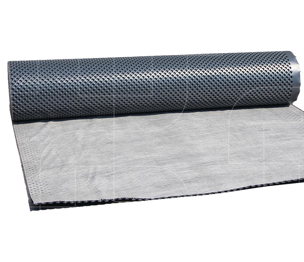 Ook geschikt voor hortizontale oppervlakte-drainage. Naargelang de druksterkte van de folie geschikt voor beloop- maar ook berijdbare oppervlakken. Eventueel bodemvocht zal door het geotextiel in de noppenbanen komen waarna het afgevoerd wordt. Het geotextiel dient als filtervlies om te vermijden dat de noppenbanen zouden dichtslibben. Deze efficiënte oppervlakte-drainage vermijdt dat dat eventueel stilstaand water de onderconstructie kan aantasten, en ook vorstschade wordt vermeden.