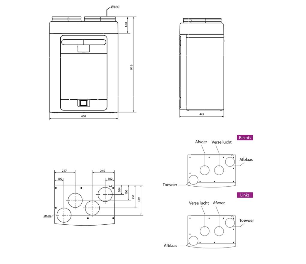 De Vent-Axia Econiq 300 is een compact, energiezuinig ventilatietoestel voor balansventilatie met warmteterugwinning (systeem D).