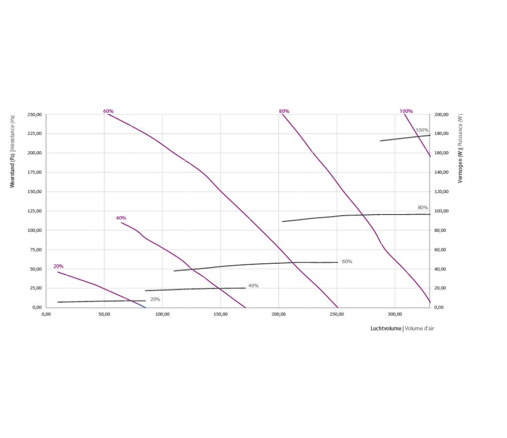 - Rendement 85% bij 305 m³/h