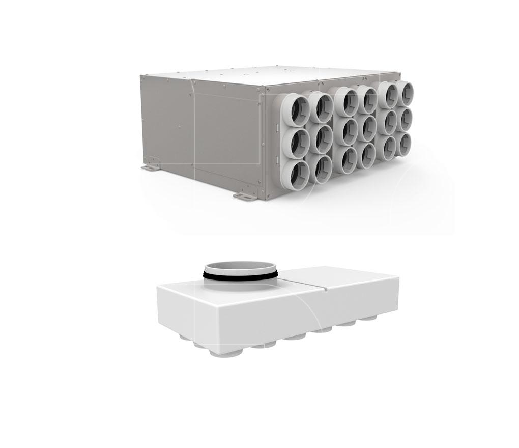 De hoofdcollector wordt nabij de unit geplaatst en is voorzien van een interne geluidsdemping voor het motorgeluid. Dit maakt een kanaalsysteem mogelijk zonder aftakkingen. De gegalvaniseerd stalen kast en aansluitingen zijn luchtdicht.