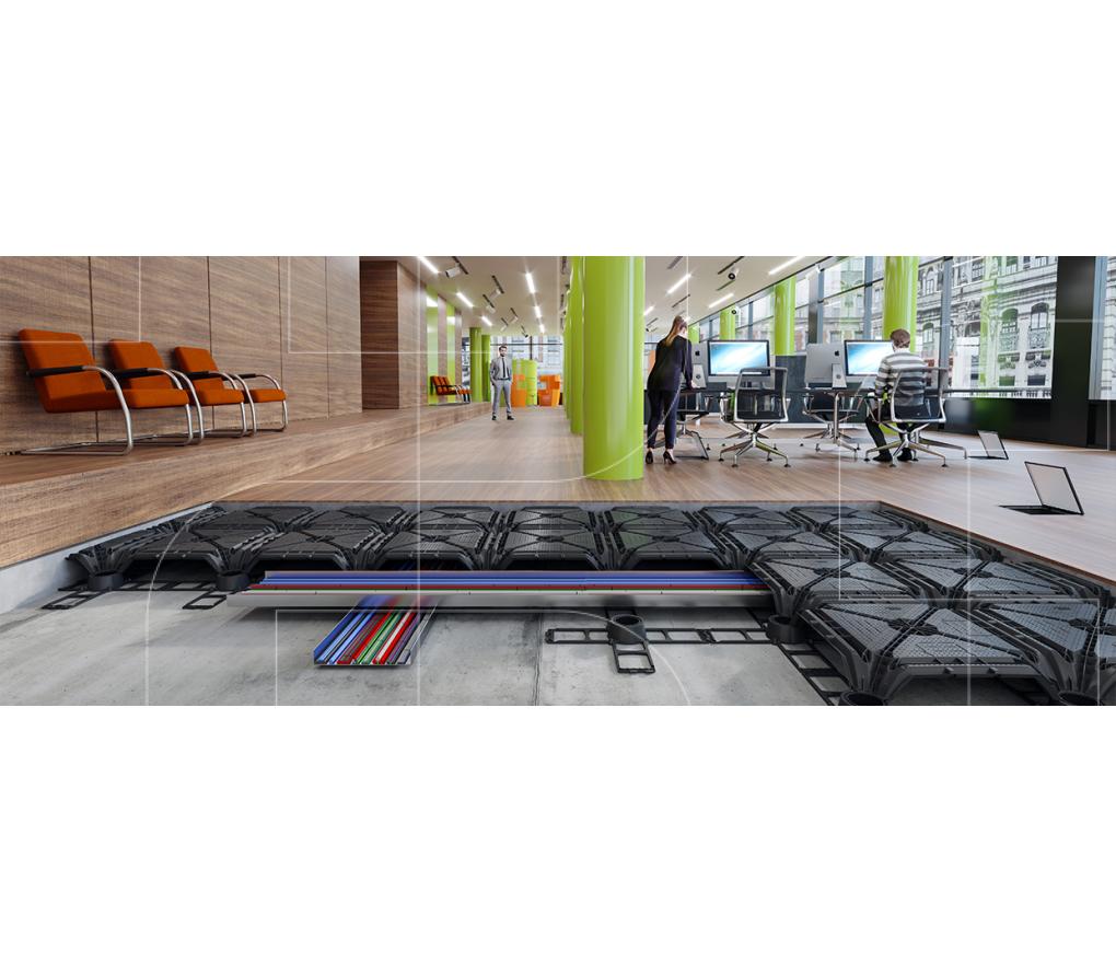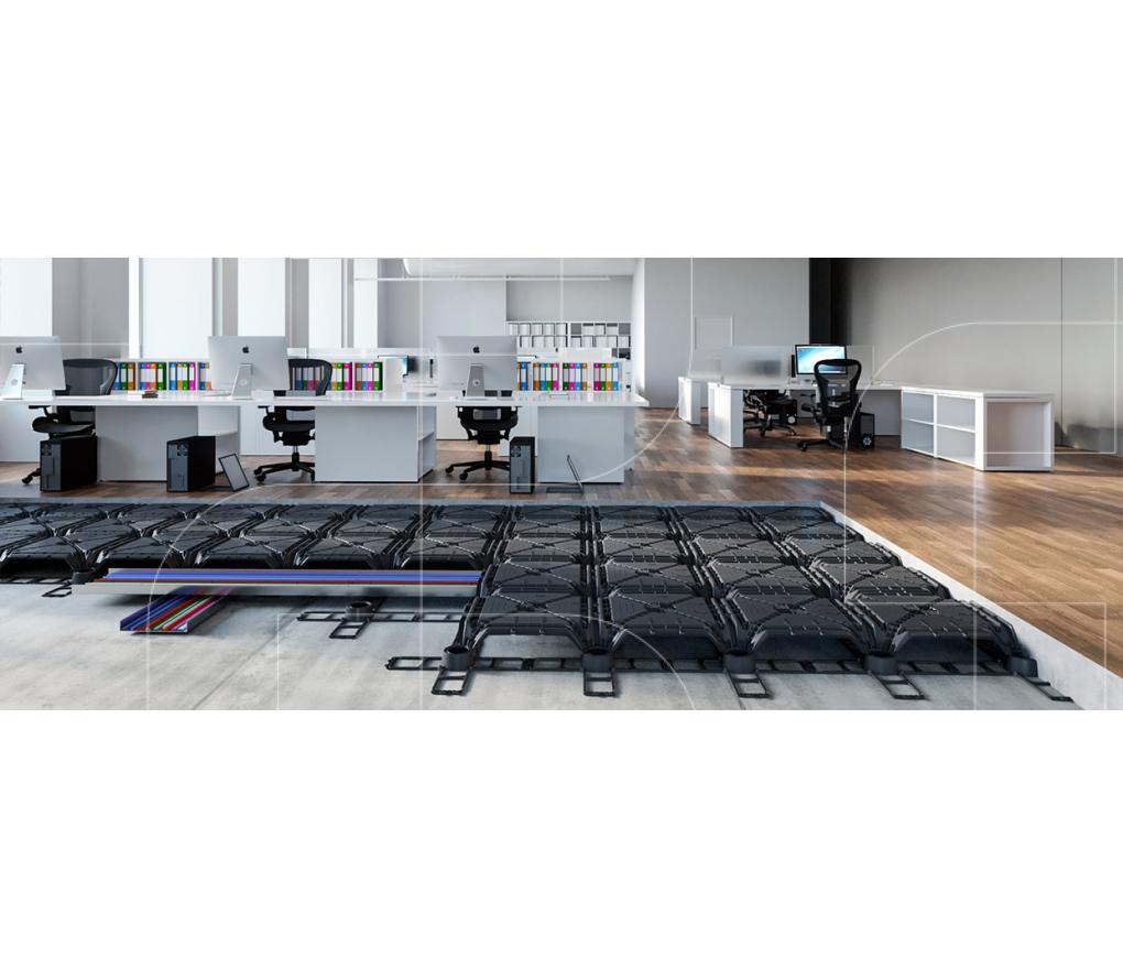 MATRIX is een bekisting van gerecycled polypropyleen voor verhoogde vloeren van gewapend beton die de doorgang van MEP-systemen (technische leidingen) vergemakkelijken.