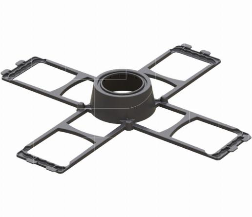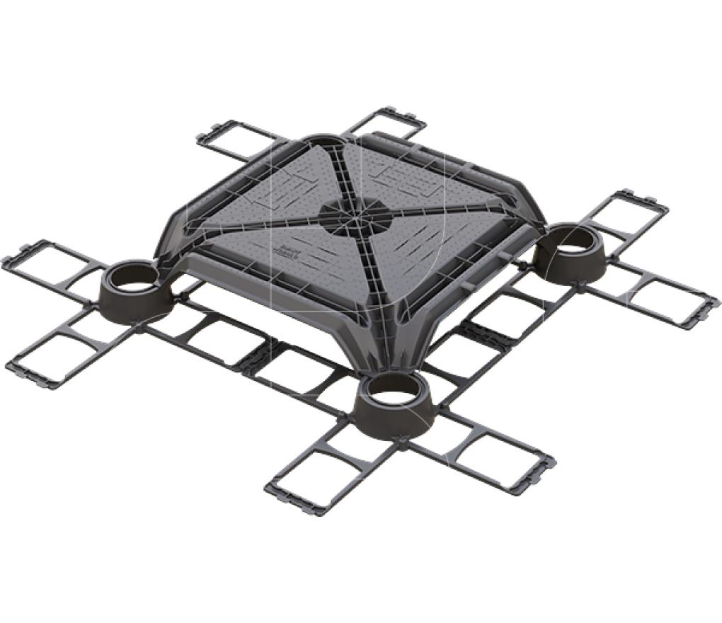 - Vierarmige basisroostermodules worden op de plaat gelegd en gekoppeld door drukhaken, dit creëert een mapping voor de doorgang van MEP-systemen