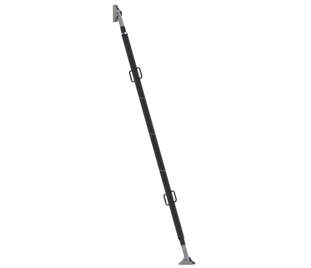 - Robuuste en ergonomische hendels gelast op de buitenbuis zorgen voor makkelijke afstelling en zijn ook makkelijk bij het verplaatsten en positioneren van de schoren