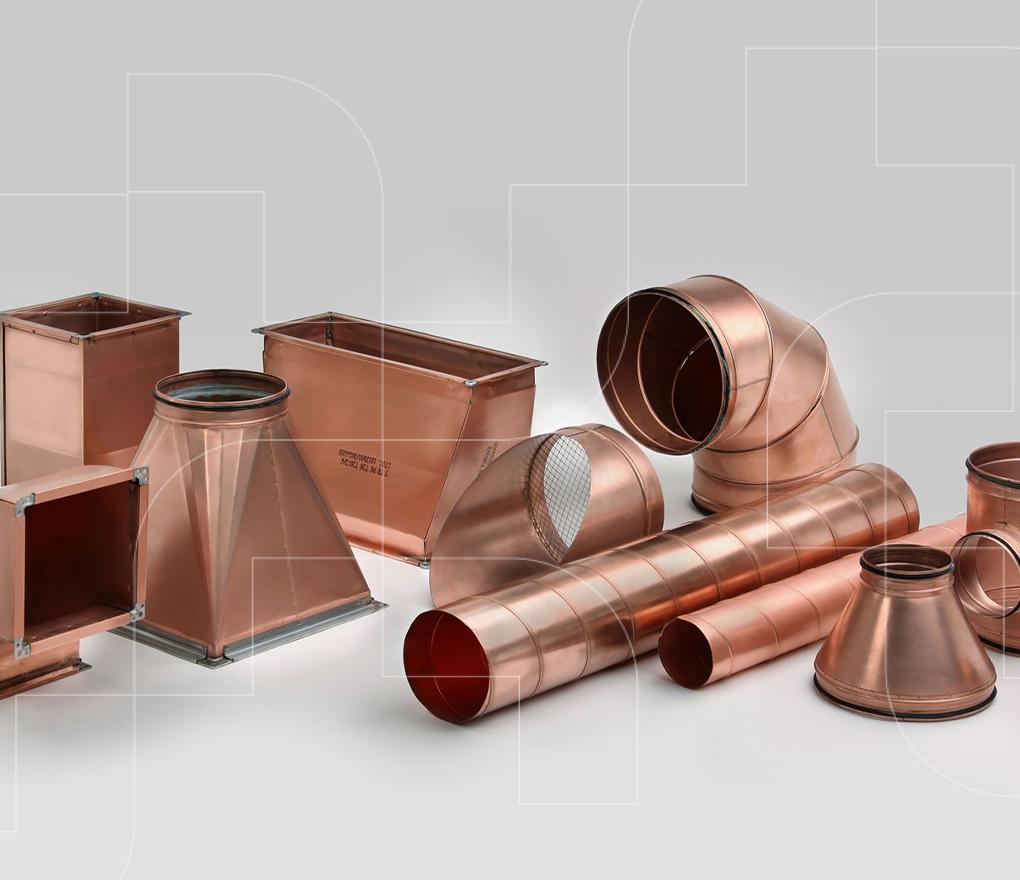 De kanalen zijn in doorgaans alle gangbare maten verkrijgbaar in zowel rond als rechthoekig. Het kanaal is vervaardigd uit speciaal met koper bekleed staal.