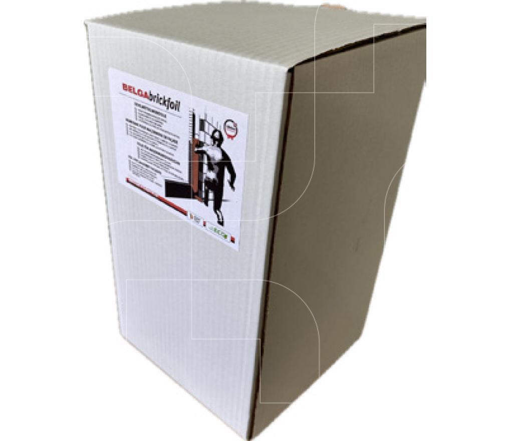 BELGAbrickfoil is een dampopen, slagregendichte en volvlaks zelfklevende folie ideaal om op gelijmd of gemetseld gevelmetselwerk te kleven.