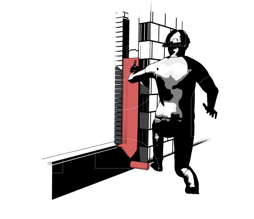 - Gevelmetselwerk (langs de spouwzijde) rondom raamopeningen, hierdoor wordt plaatselijk regendoorslag doorheen het gevelmetselwerk vermeden en blijft de isolatie rondom het raam altijd droog