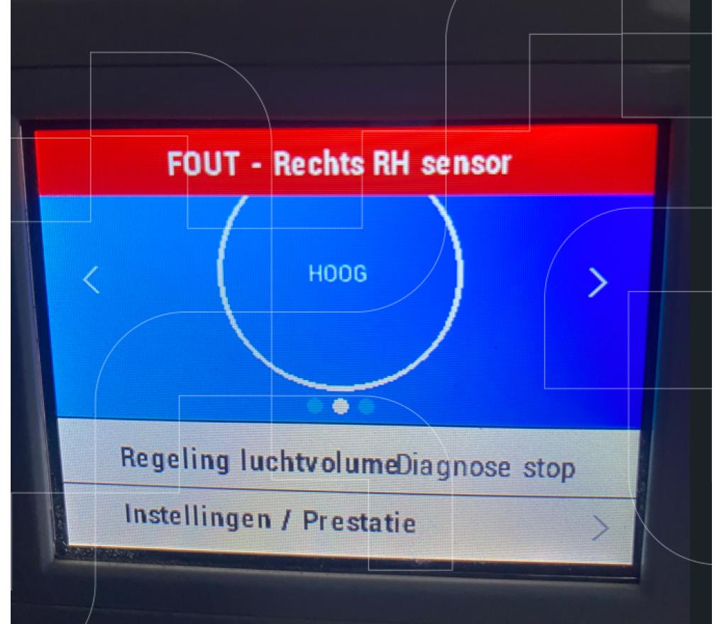 Betekenis: De vochtsensor is defect en moet vervangen worden. De toestellen hebben 2 jaar fabrieksgarantie. Binnen de garantie wordt een nieuwe sensor geleverd.