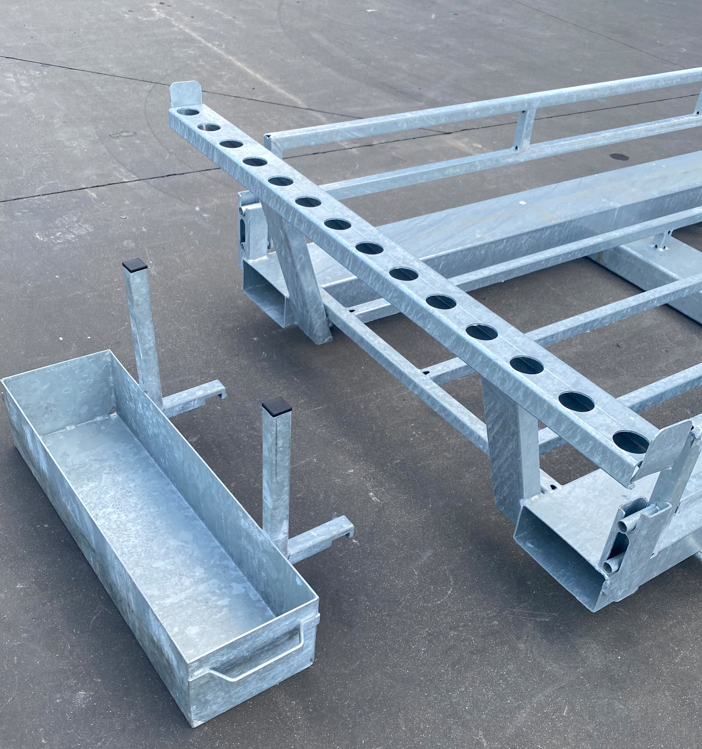 Het Twin stapelsysteem is een professioneel opslag- en transportsysteem dat bouwhekken en bouwhekvoeten combineert. Deze stapelbakken in thermisch verzinkt staal kan u gebruiken om hekken, hekvoeten en (optioneel) klemmen op een efficiënte manier te vervoeren – via staand transport – en op te slaan.