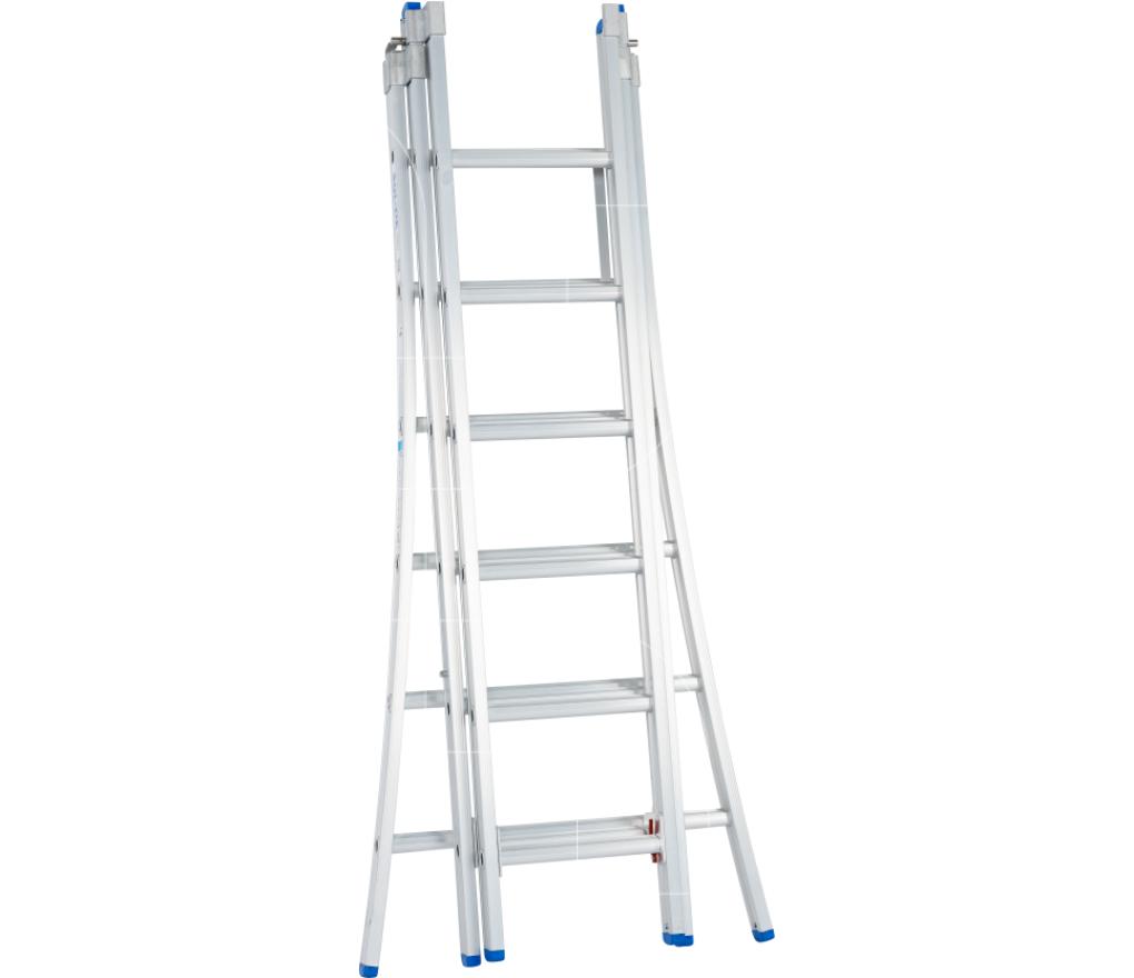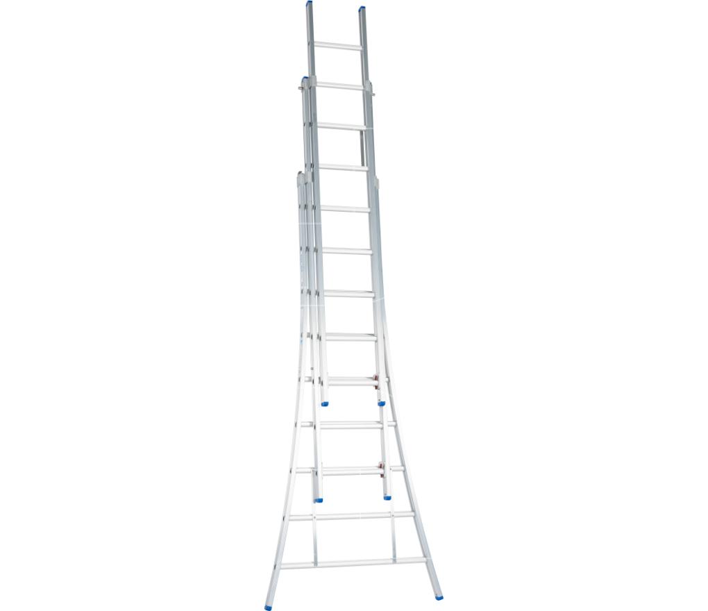 Ladder 3-delig model met 3x9 sporten en uitgebogen voet lengte 250 tot 550 cm
