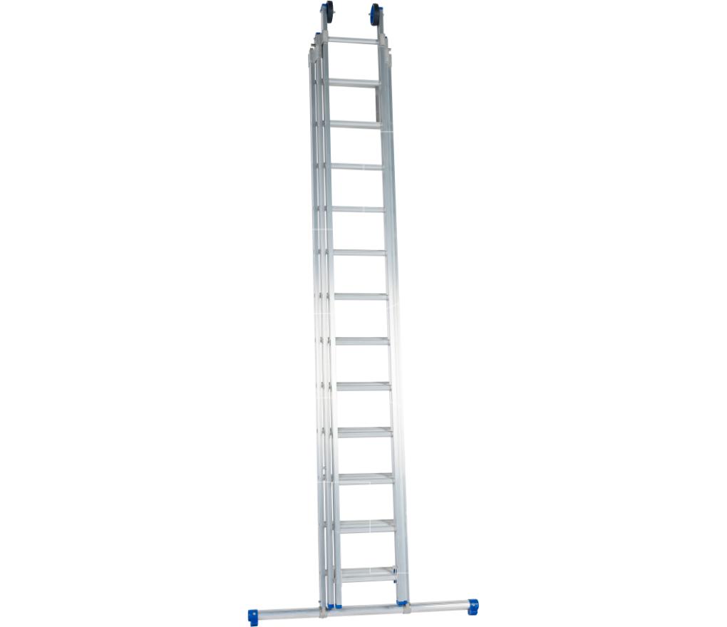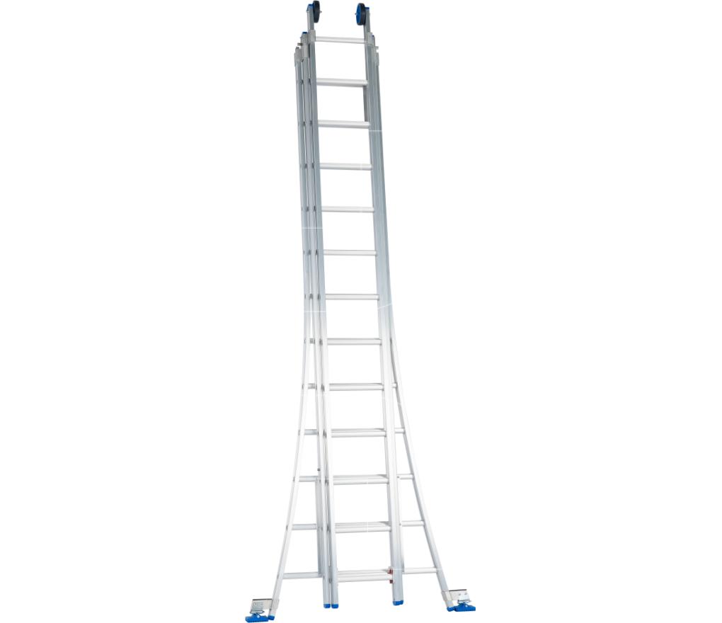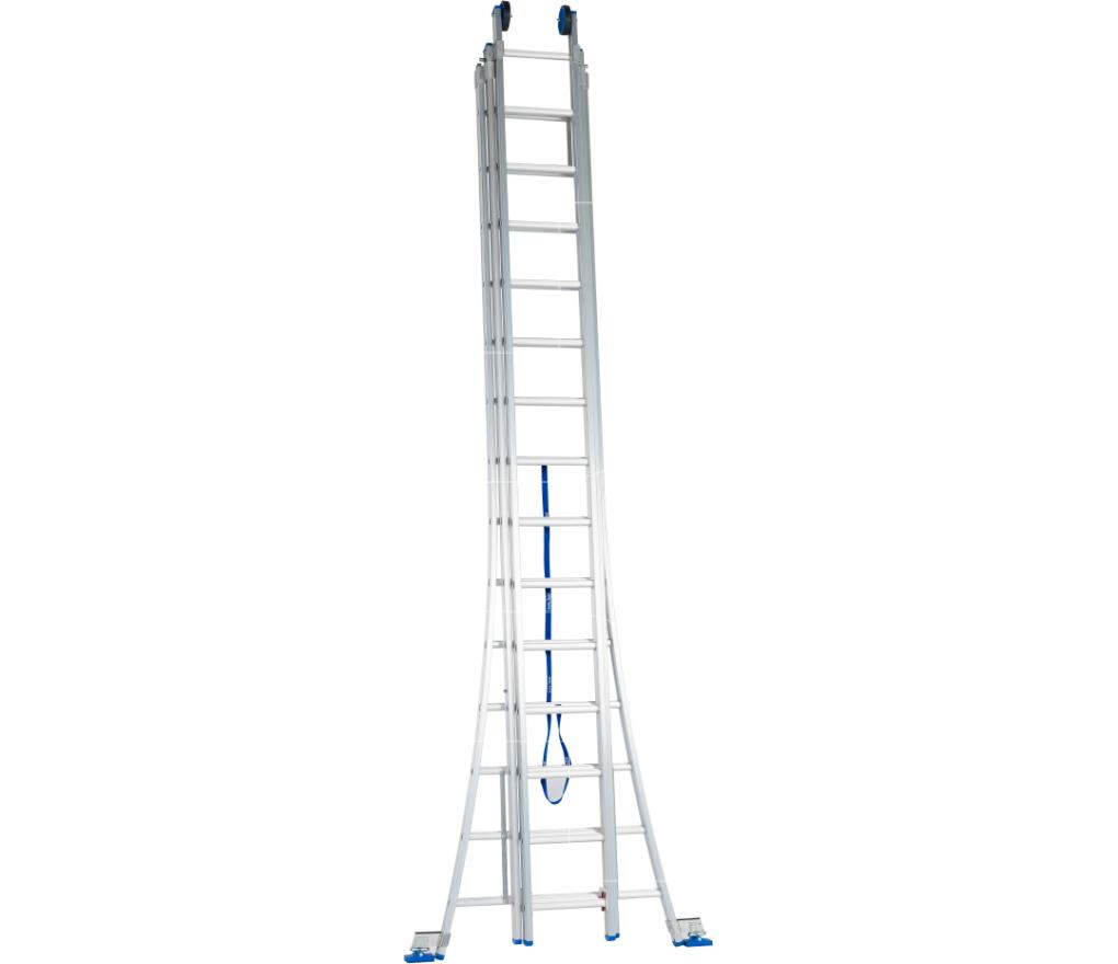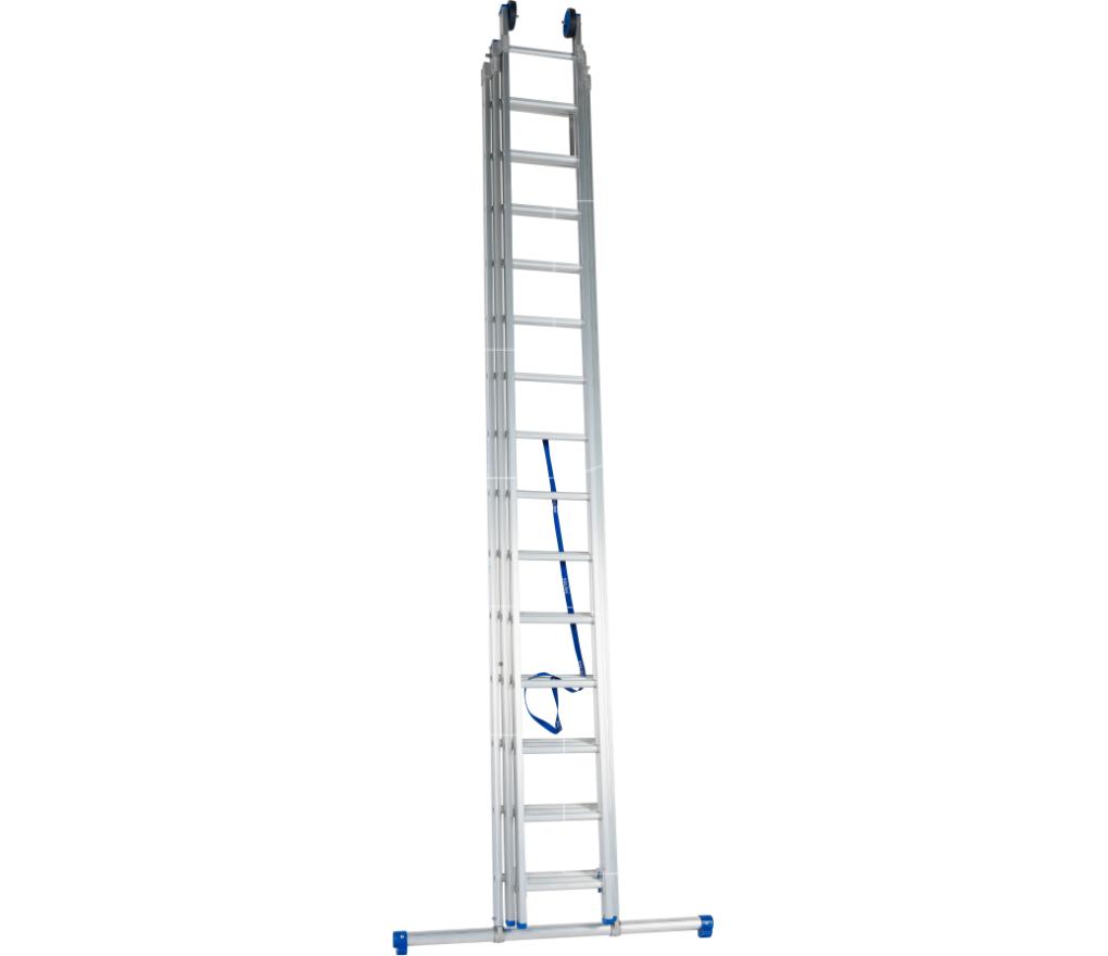 Professionele ladder 3-delig met brede sporten, zeer stabiel en weinig vering tijdens beklimmen.