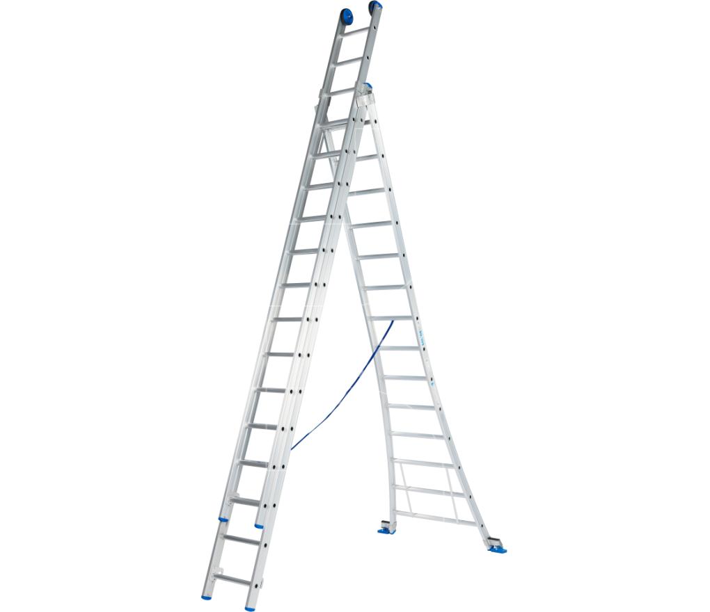 Ladder 3-delig model met 3x14 sporten en uitgebogen voet lengte 390 tot 915 cm