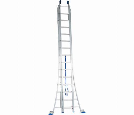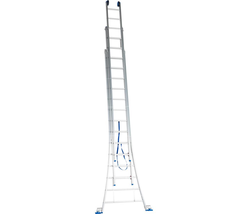 Professionele ladder 3-delig met brede sporten, zeer stabiel en weinig vering tijdens beklimmen.