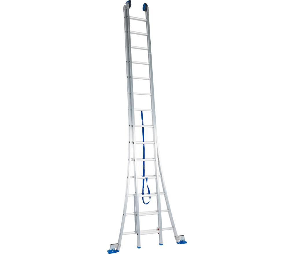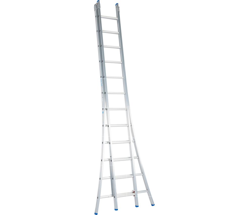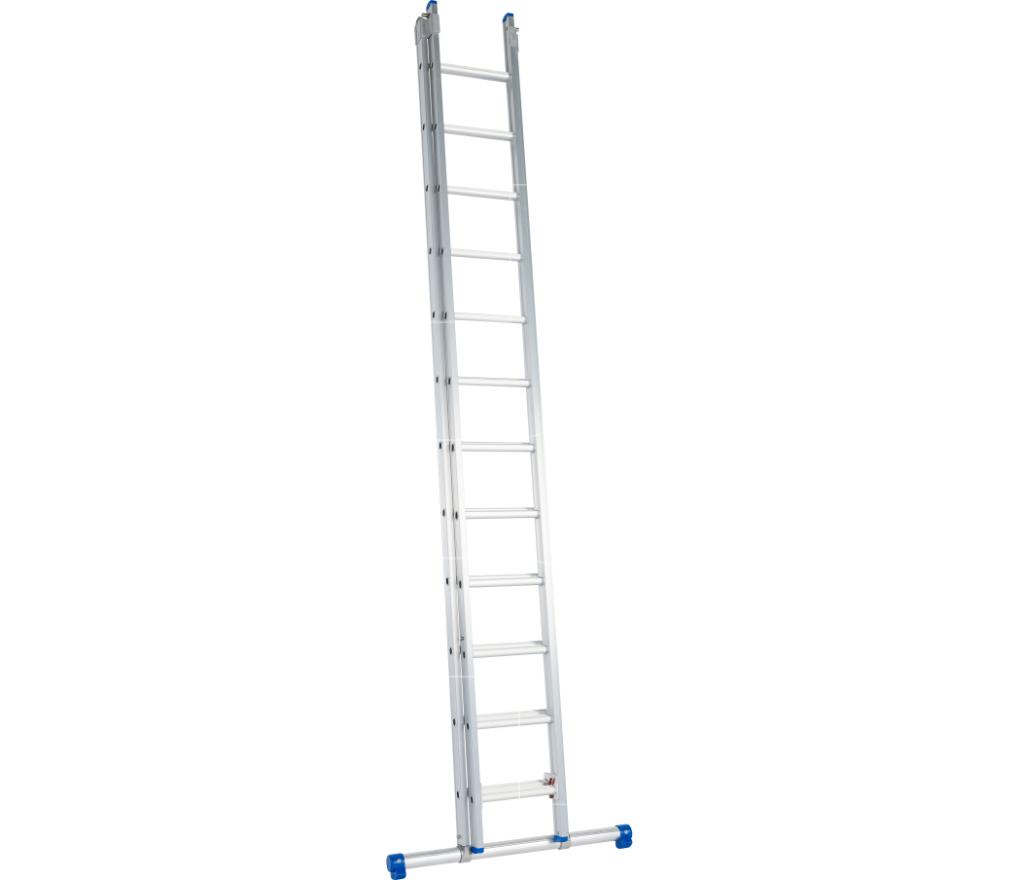 Ladder 2-delig model met 2x12 sporten en uitgebogen voet lengte 325 tot 550 cm
