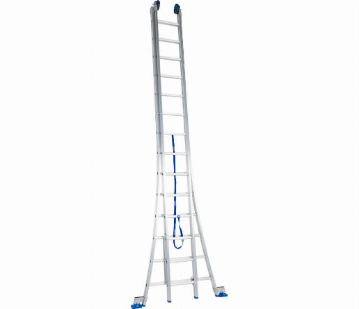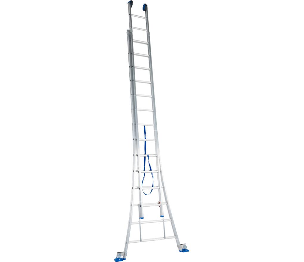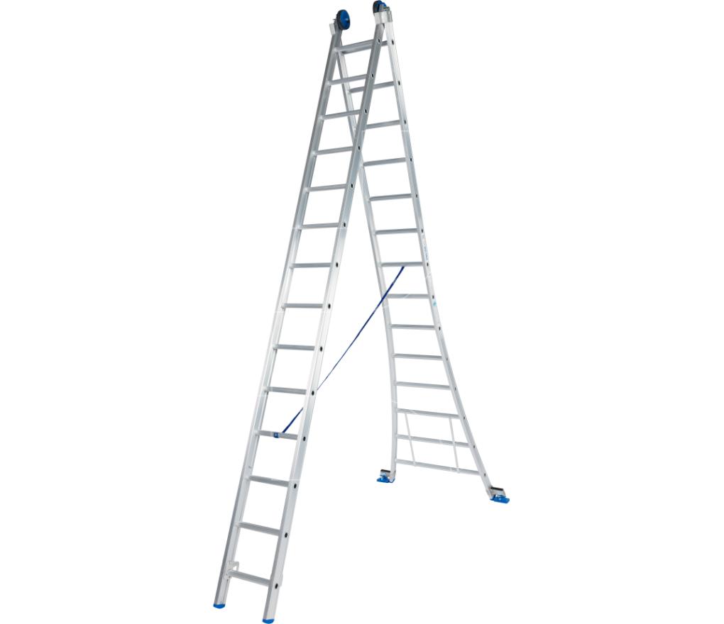 Ladder 2-delig model met 2x14 sporten en uitgebogen voet lengte 375 tot 650 cm