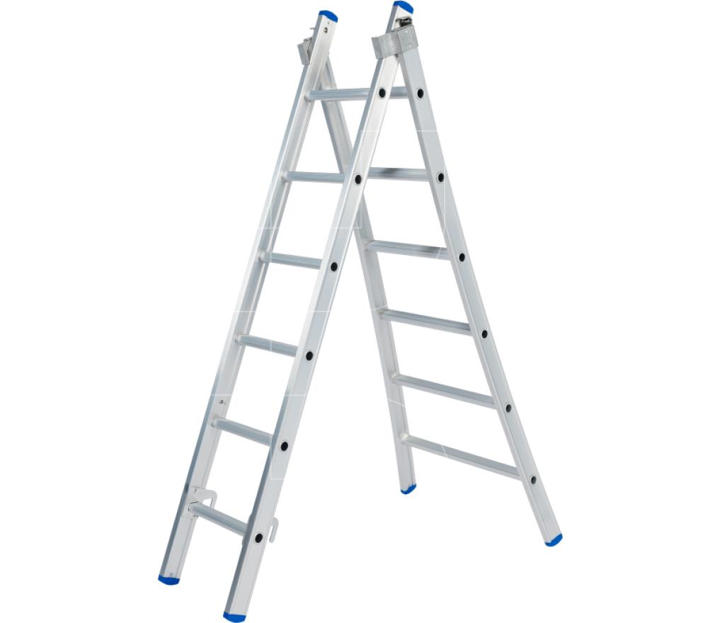 Ladder 2-delig model met 2x6 sporten en uitgebogen voet lengte 175 tot 275 cm