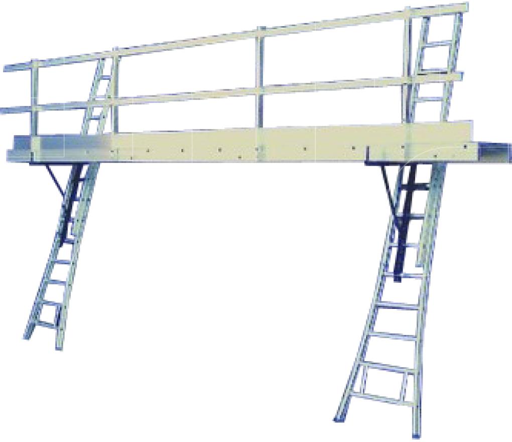 Deze werkbrug zonder leuning biedt een grote spanwijdte voor een relatief gering gewicht.