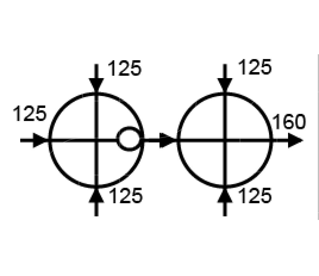 Dubbele put met kraag diameter 315 met 5 x 125 + 1 x 160 mm aansluiting