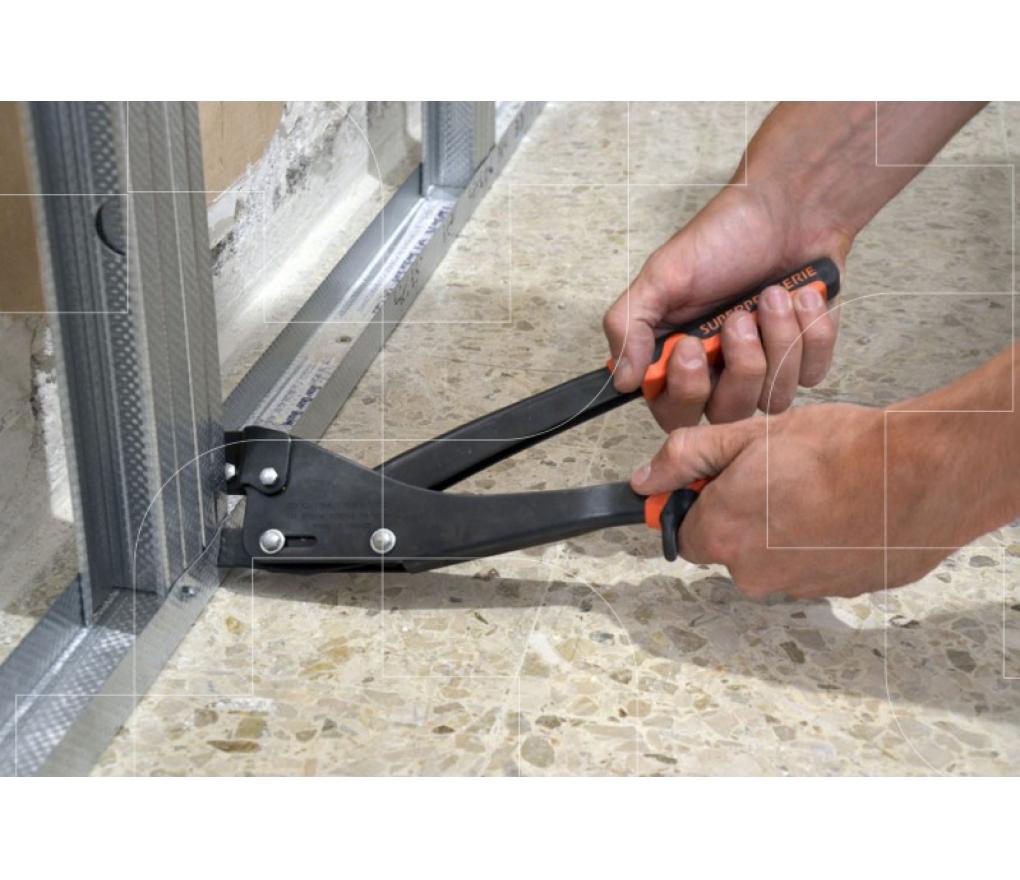 Profielverbindingstang voor het onderling verbinden van METAL STUD profielen met 2 handen