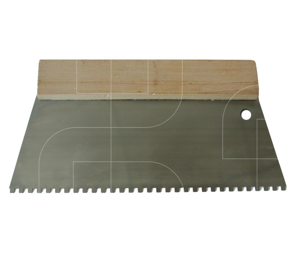 Getande spaan met houten handgreep en vierkante tanding 280x130 / 4x4 mm