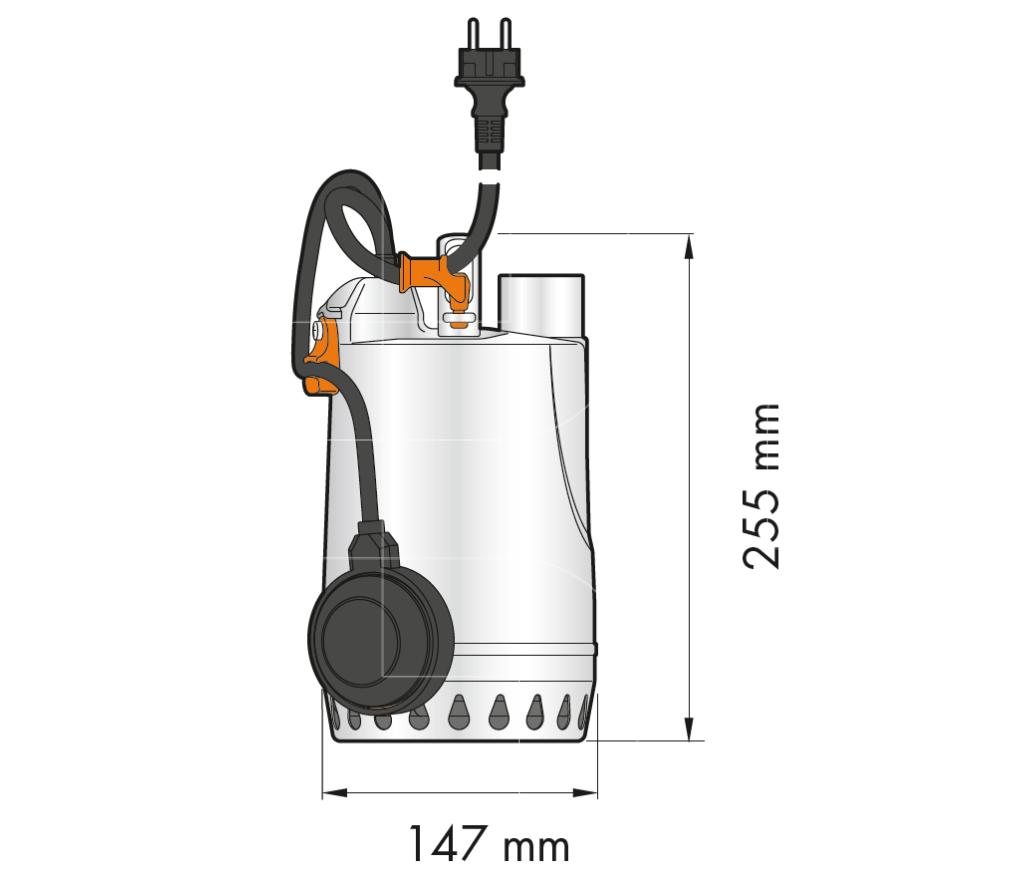 Technische ficheUltra robuuste dompelpomp in RVS met vlotter voor zuiver water debiet 20 - 140 l/min.