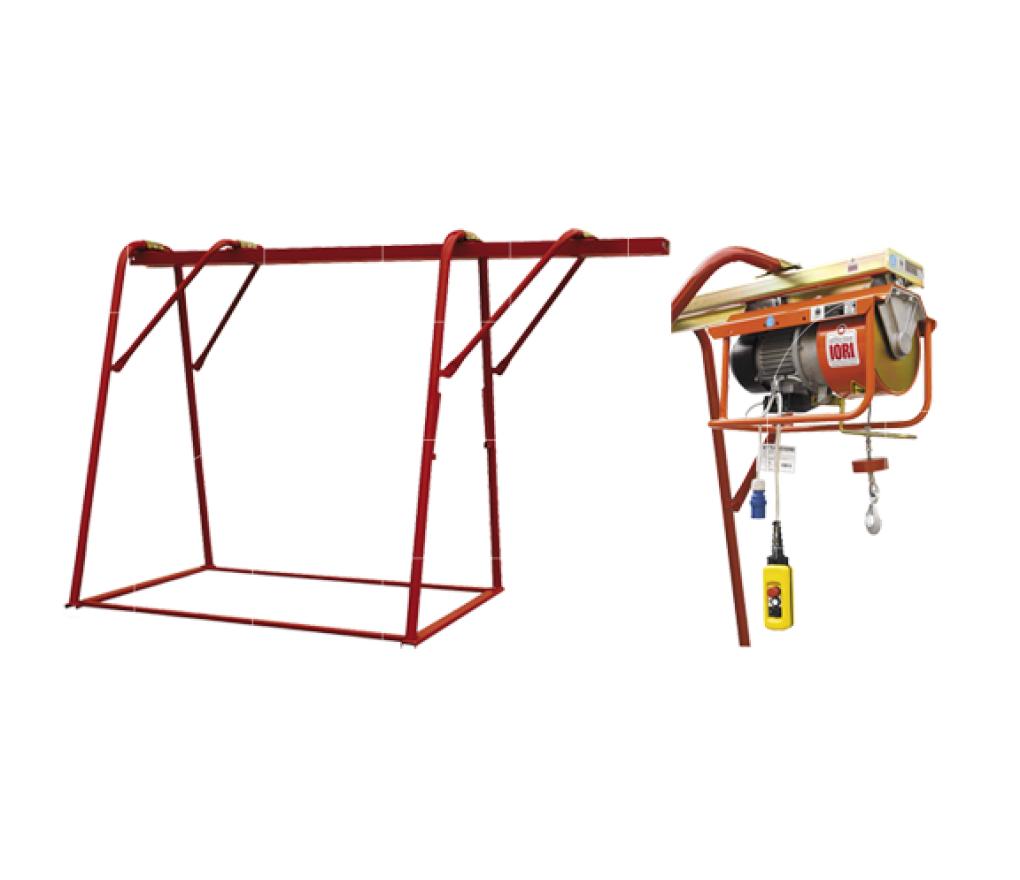 Hijslier + armsteun met 2 beugels, deze beugels kunnen bevestigd worden aan een schoor die tussen vloer en plafond geklemd wordt.