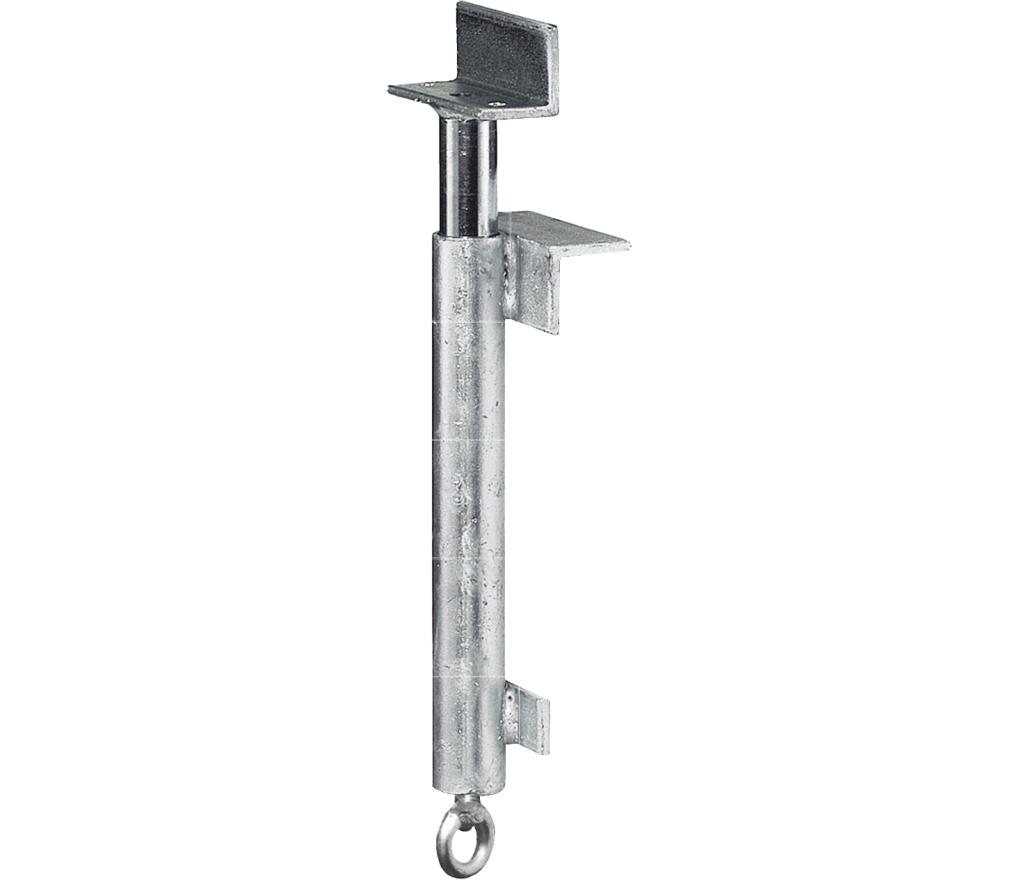 - Onderaan zit een oogbout, zodat makkelijk kan doorgestoken worden met schroevendraaier of betonijzer
