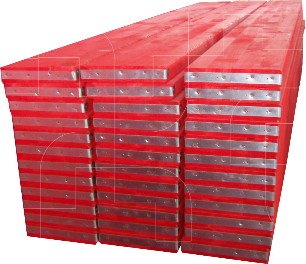 Stellingplanken van hoogwaardig vurenhout, driedelig verlijmd tegen kromtrekken en gedrenkt.