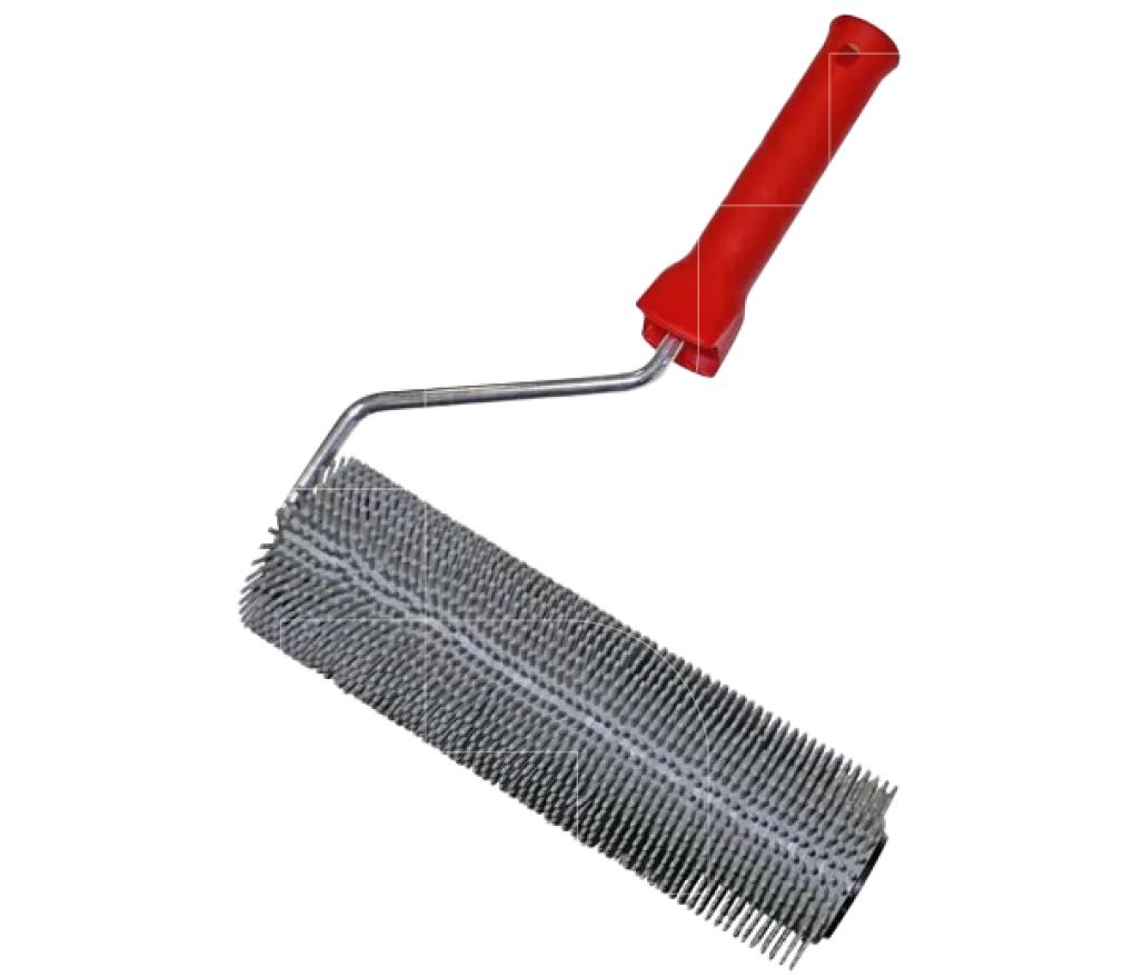 Ontluchtingsrol fijn met handvat die dient om de egaliseermortel te ontluchten en op die manier vloeifronten weg te werken.