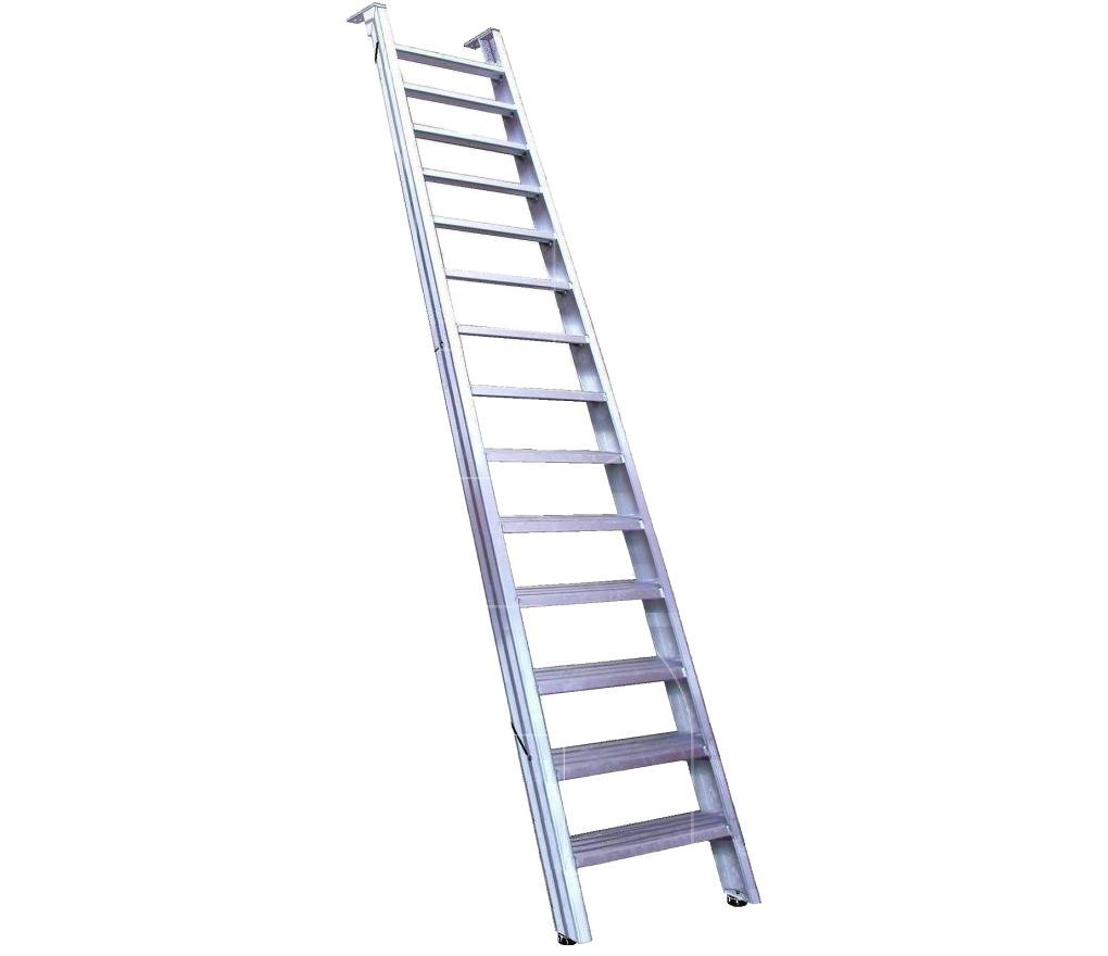 Werftrap met 14 treden, deze zijn voorzien van antislip profielen. De bevestigingspunten voor de trapleuning zijn aan beide zijden voorzien.