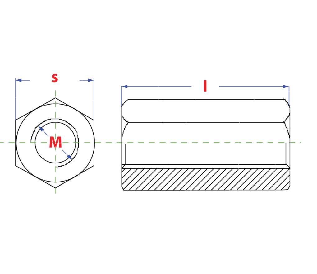 Zeskantmoer DIN 6334 SW13 voor het verbinden van draadeinden of verlengen van schroefdraadverbindingen