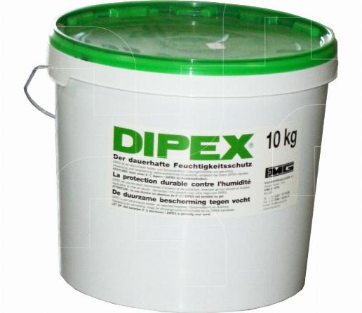 - pleistermortel / metselmortel: Cementmortel wordt waterafstotend als aan het aanmaakwater 20% DIPEX wordt toegevoegd.