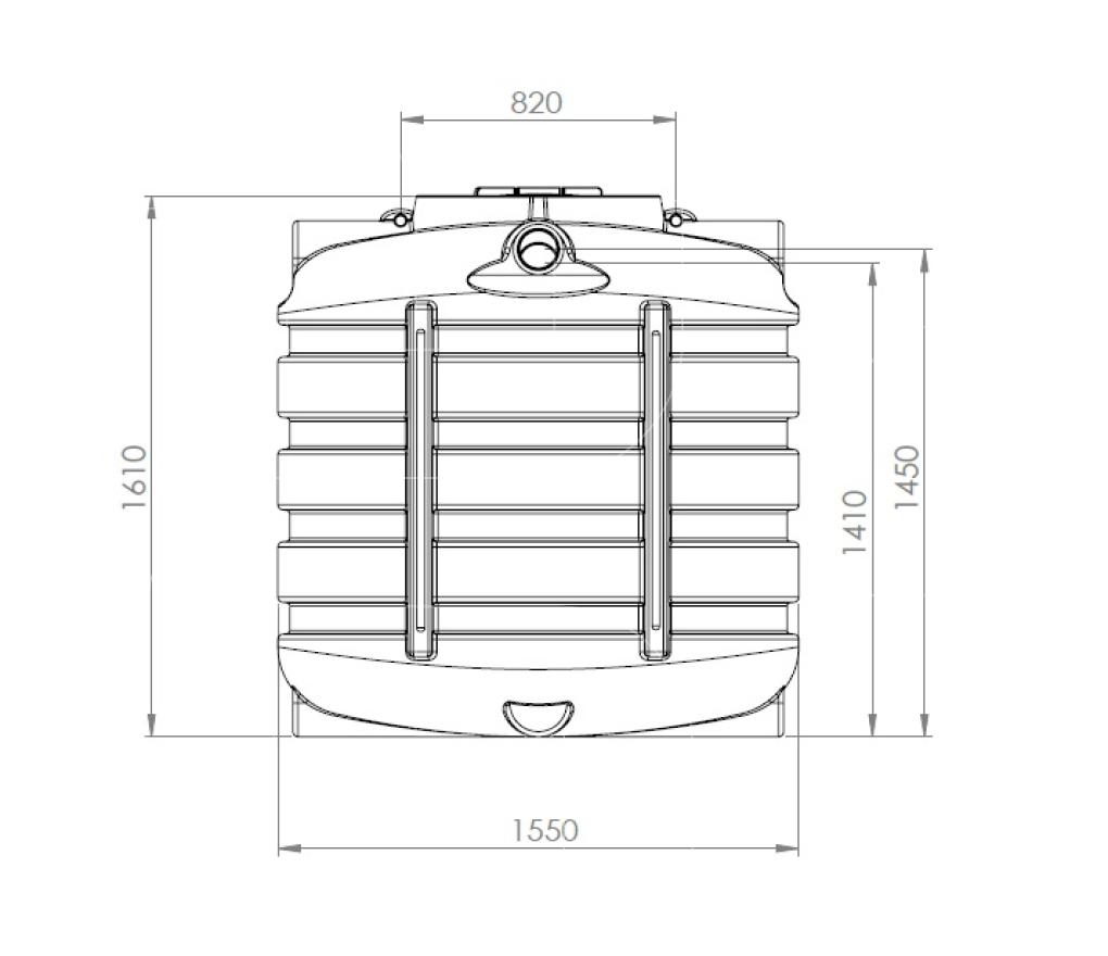 Cilindrische kunststof tank voor ondergrondse opslag van regenwater 2000L