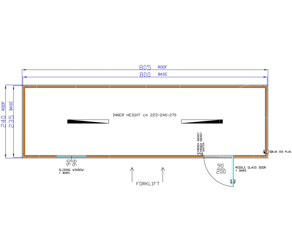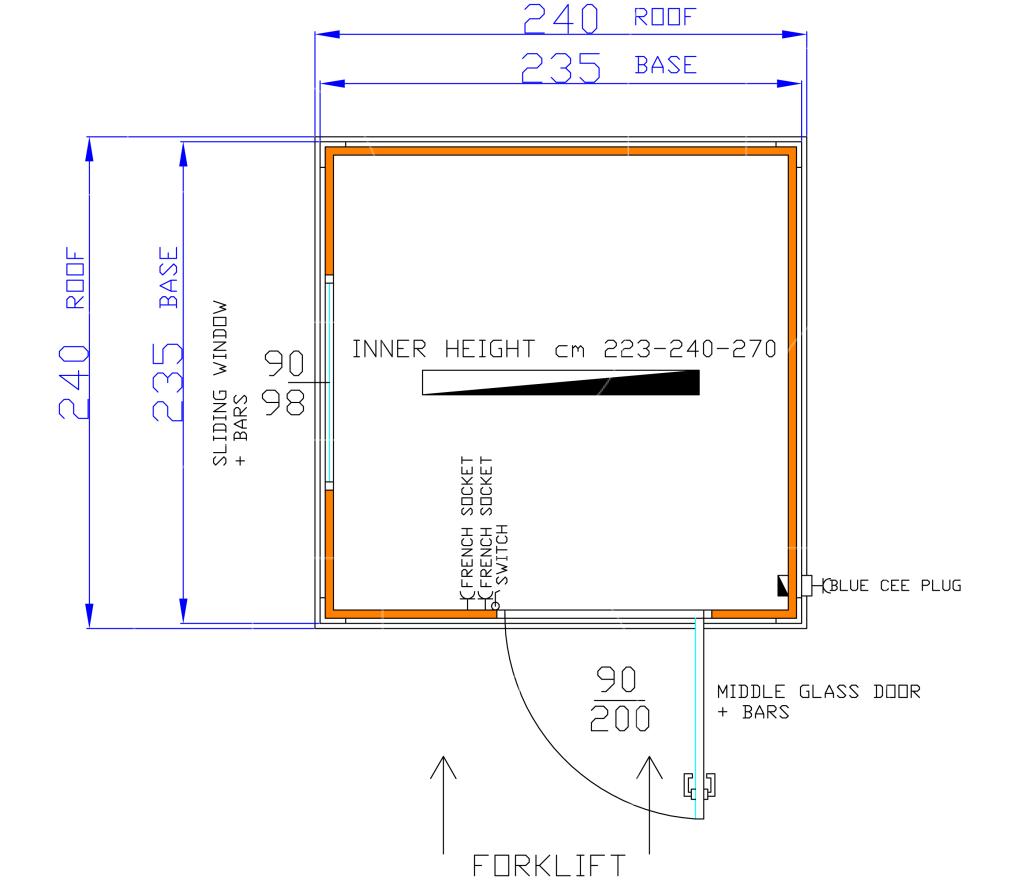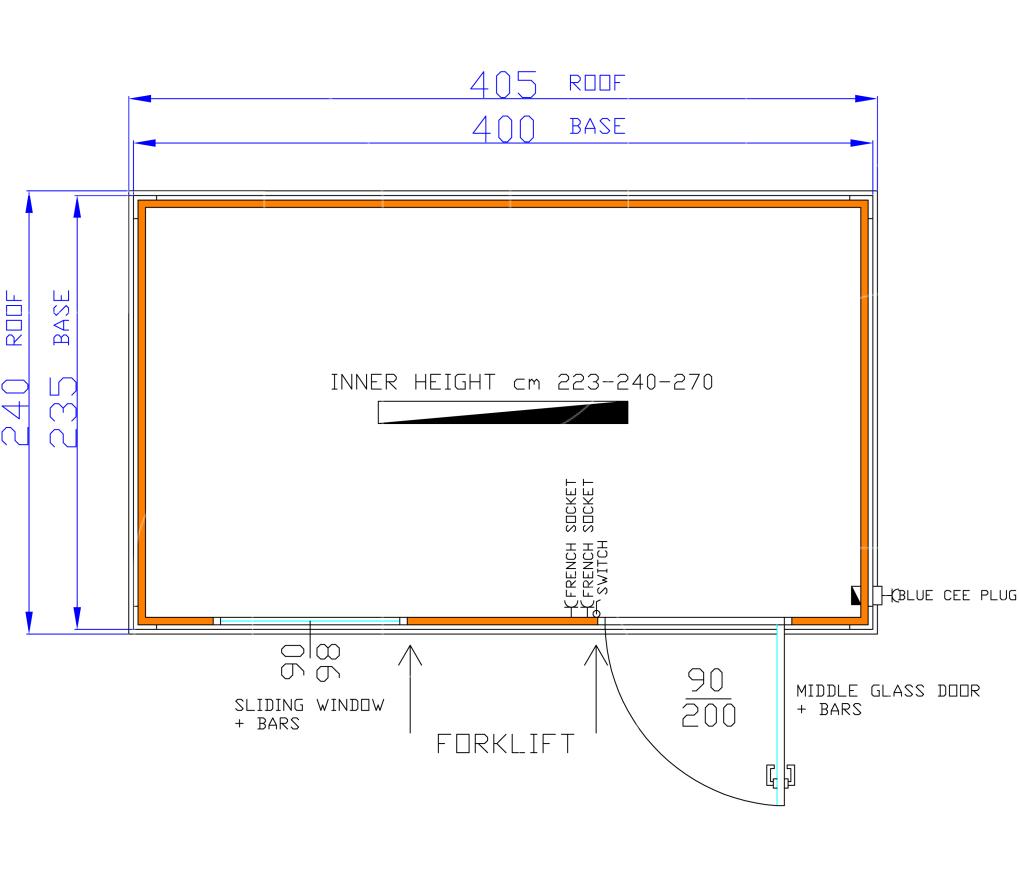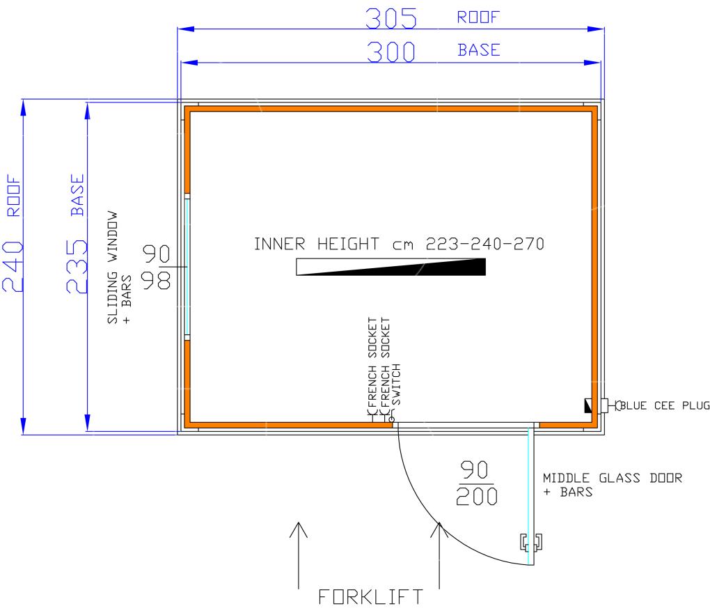 Standaarduitrusting omvat: geïsoleerde container, deur met raam 97x205 cm, schuifraam 97x105 cm, verlichting, elektriciteit met standaard twee stopcontacten, vorkliftvoorziening onderaan de containers, vier hijsogen aan de bovenkant en CE-stekker aan de buitenkant.