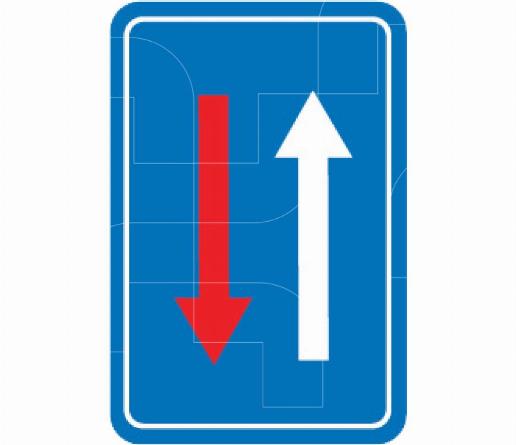 Verkeersbord dat een smalle doorgang aangeeft. Voorrang ten opzichte van de bestuurders die uit de tegenovergestelde richting komen.