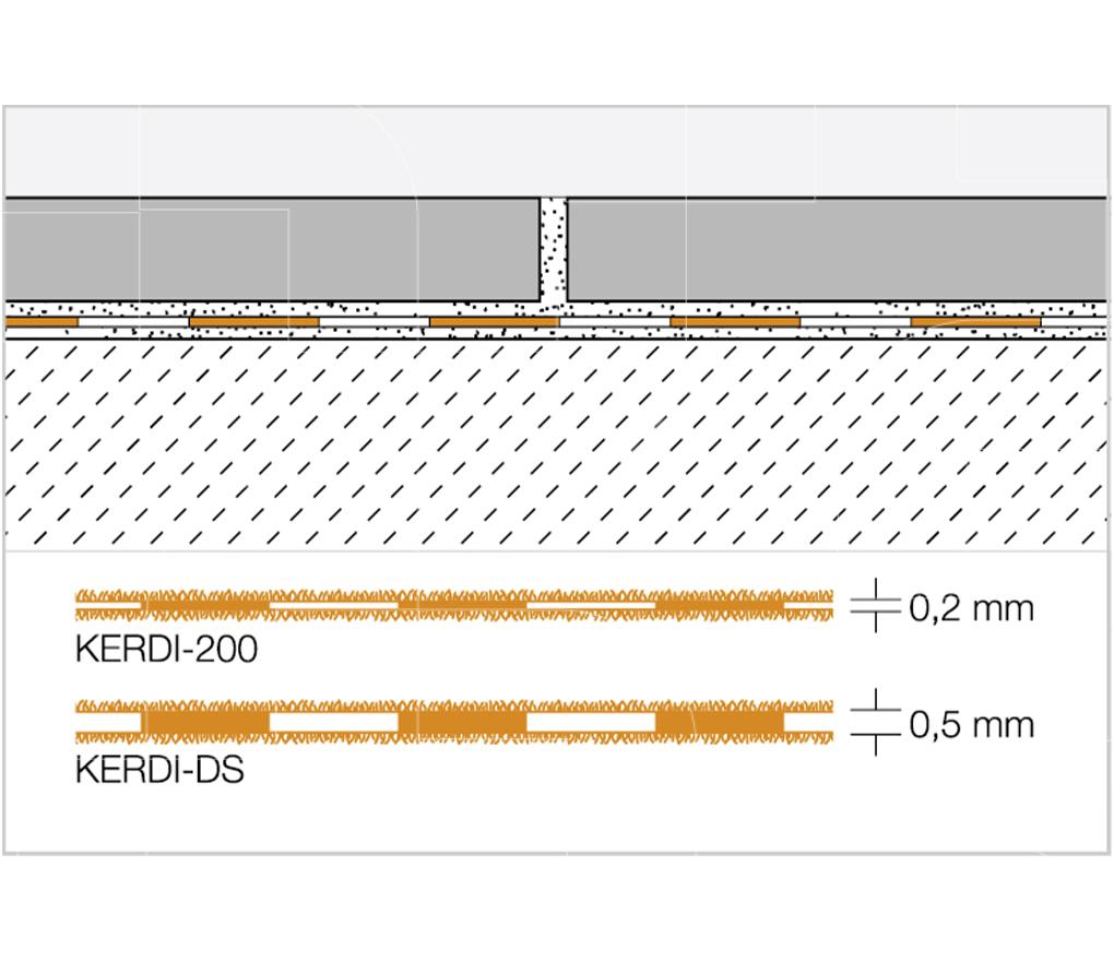 - KERDI-DS is een afdichtingsmat en dampscherm. Dikte 0,5 mm voor gebruik in zwembaden en wellness omgevingen of voor industriële omgevingen met verhoogde luchtvochtigheid